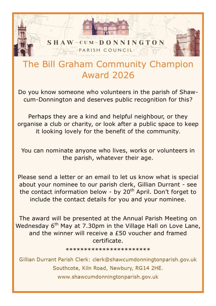 Next meeting: Parish Council Meeting - Wednesday 15Nominate your Community Champion for 2026